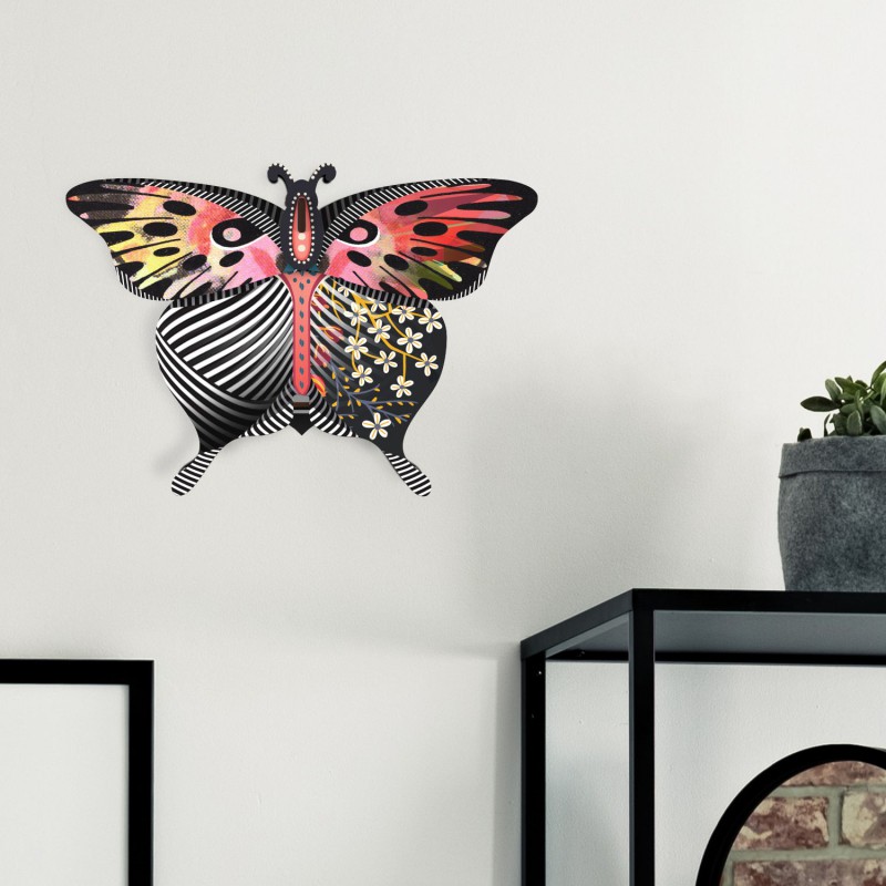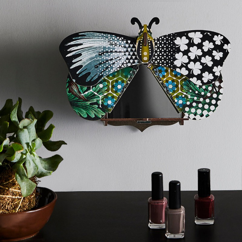 Papillon mural décoratif avec rangement caché. Facile à assembler, sans colle ni outils. En matériaux écologiques.