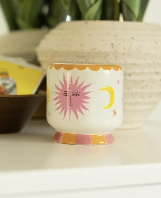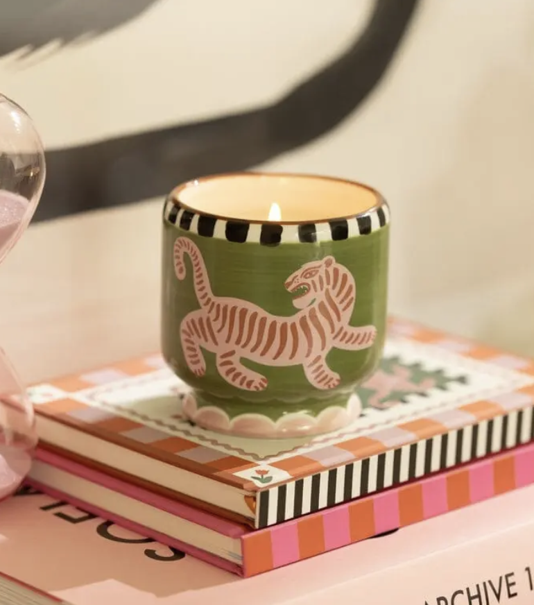 Chaque Bougie « A Dopo » se distingue par son pot en céramique illustré. Les motifs colorés et graphiques évoquent l’univers de la dolce vita et des paysages méditerranéens. Une fois la bougie consumée, le contenant peut être réutilisé comme petit vase, pot décoratif ou rangement. Cette approche rend chaque pièce à la fois esthétique et durable.