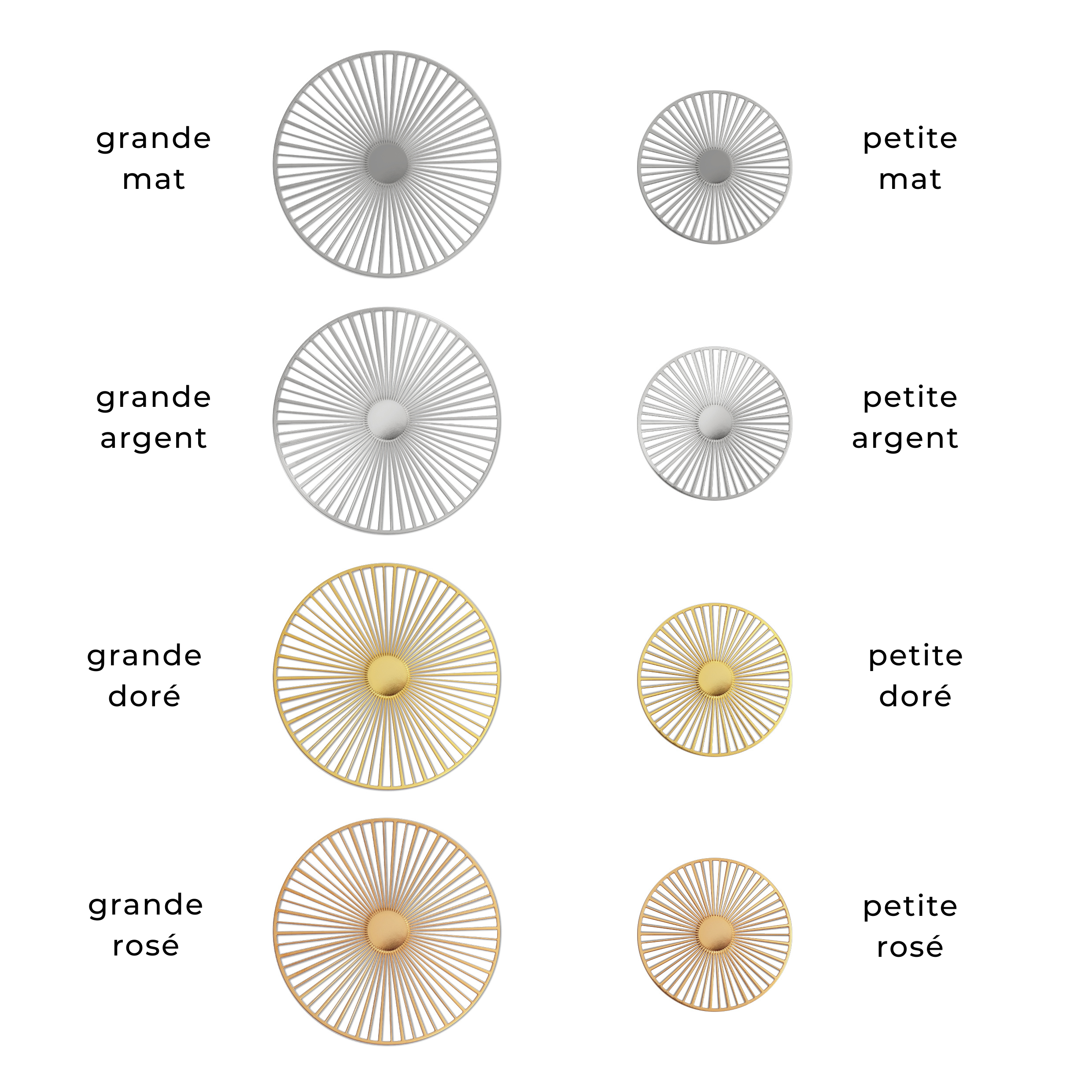 Argenté, Argenté mat, Doré, Doré Mat, Doré pâle, Rosé