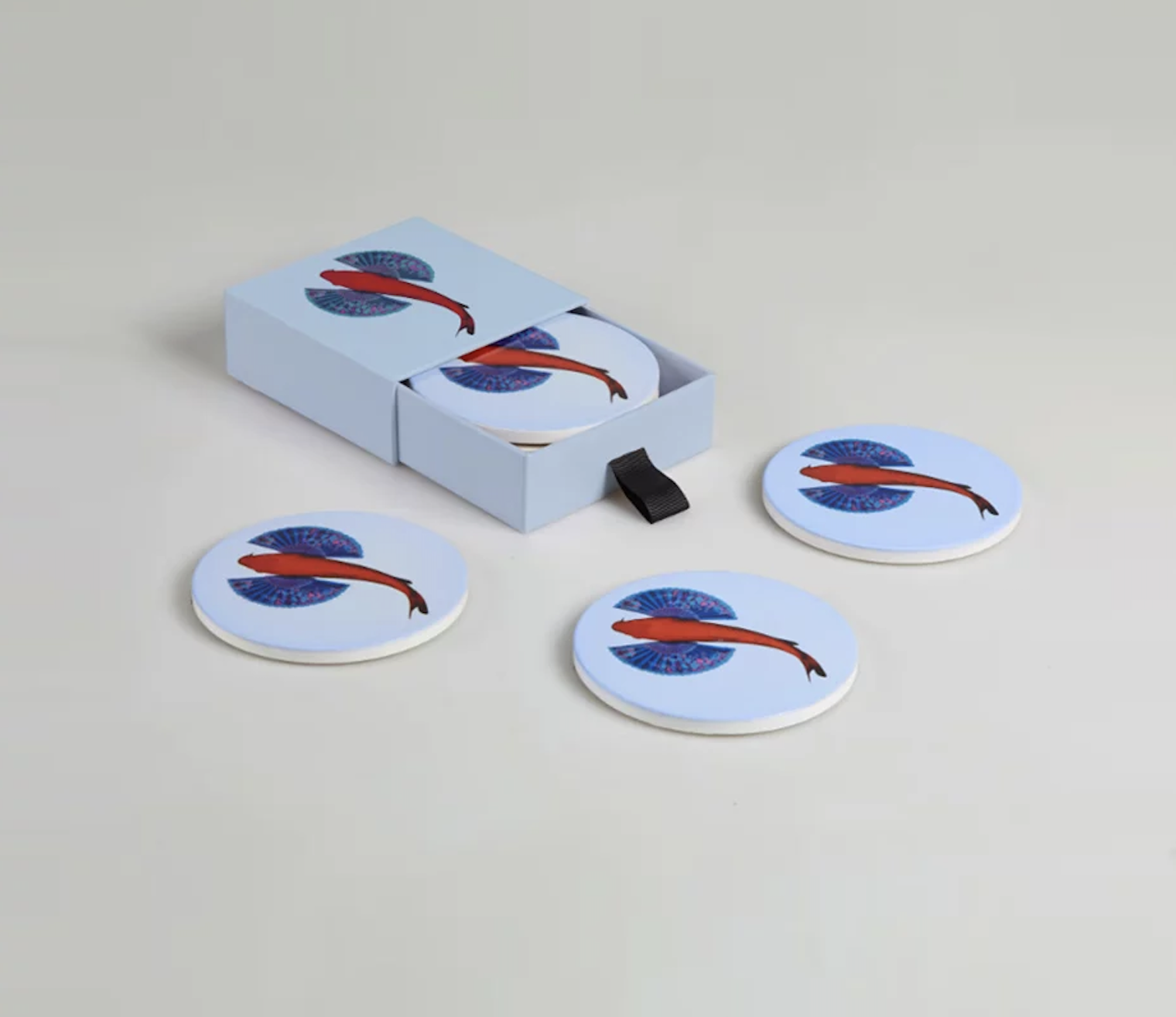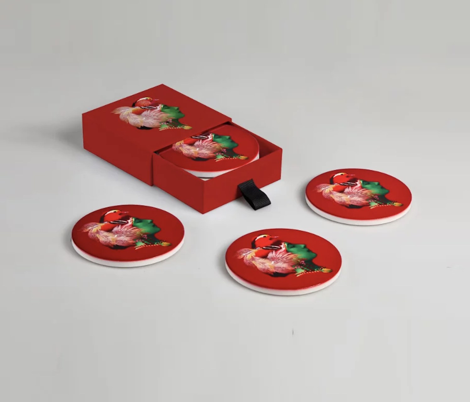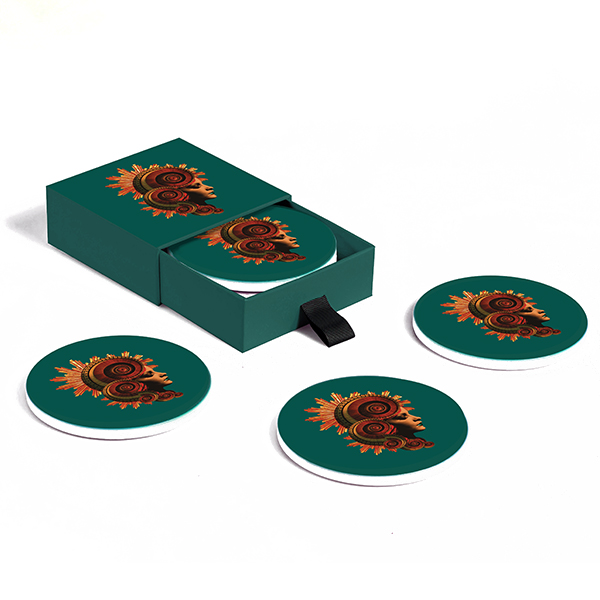 Les dessous de verre de la collection « Curiosito » de Gangzaï protègent vos surfaces avec une note artistique. Ce set comprend 4 dessous de verres en céramique au diamètre d’environ 10 cm chacun, souvent accompagnés d’un revers en liège pour protéger efficacement vos meubles. Vendu dans une boite cadeau assortie.