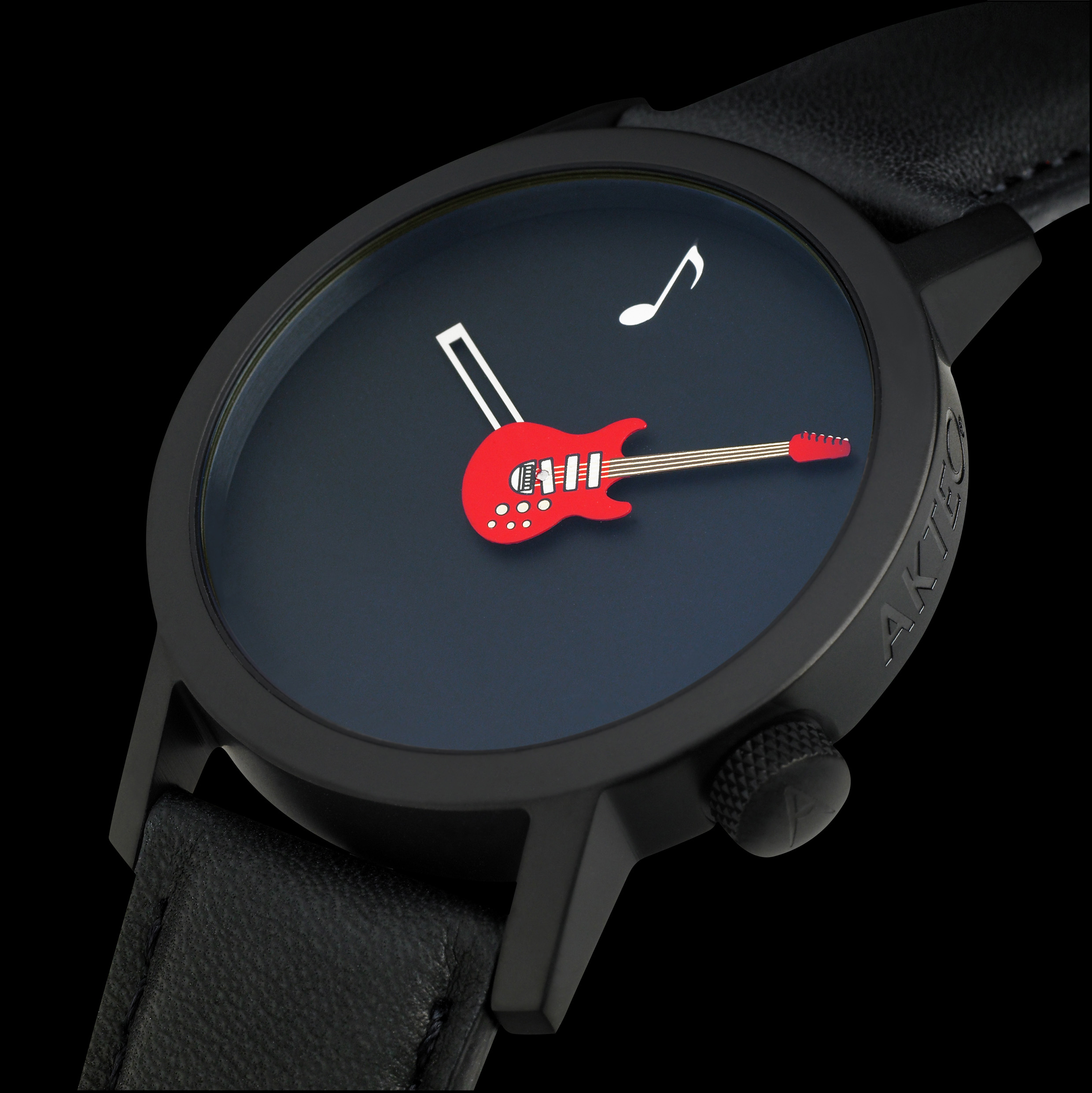 La montre Akteo Guitare Rouge 38 PVD Noir célèbre l’univers vibrant de la musique et de la scène rock. Avec son cadran thématique et ses aiguilles originales en forme de guitare et de médiator, elle incarne l’énergie et la passion des guitaristes.Le contraste entre le fond noir intense et les détails rouges apporte une allure audacieuse et contemporaine. Élégante mais pleine de caractère, cette montre est aussi bien un accessoire de style qu’un clin d’œil à une véritable passion musicale.Le cadran possède une note en relief, indiquant 12h.
