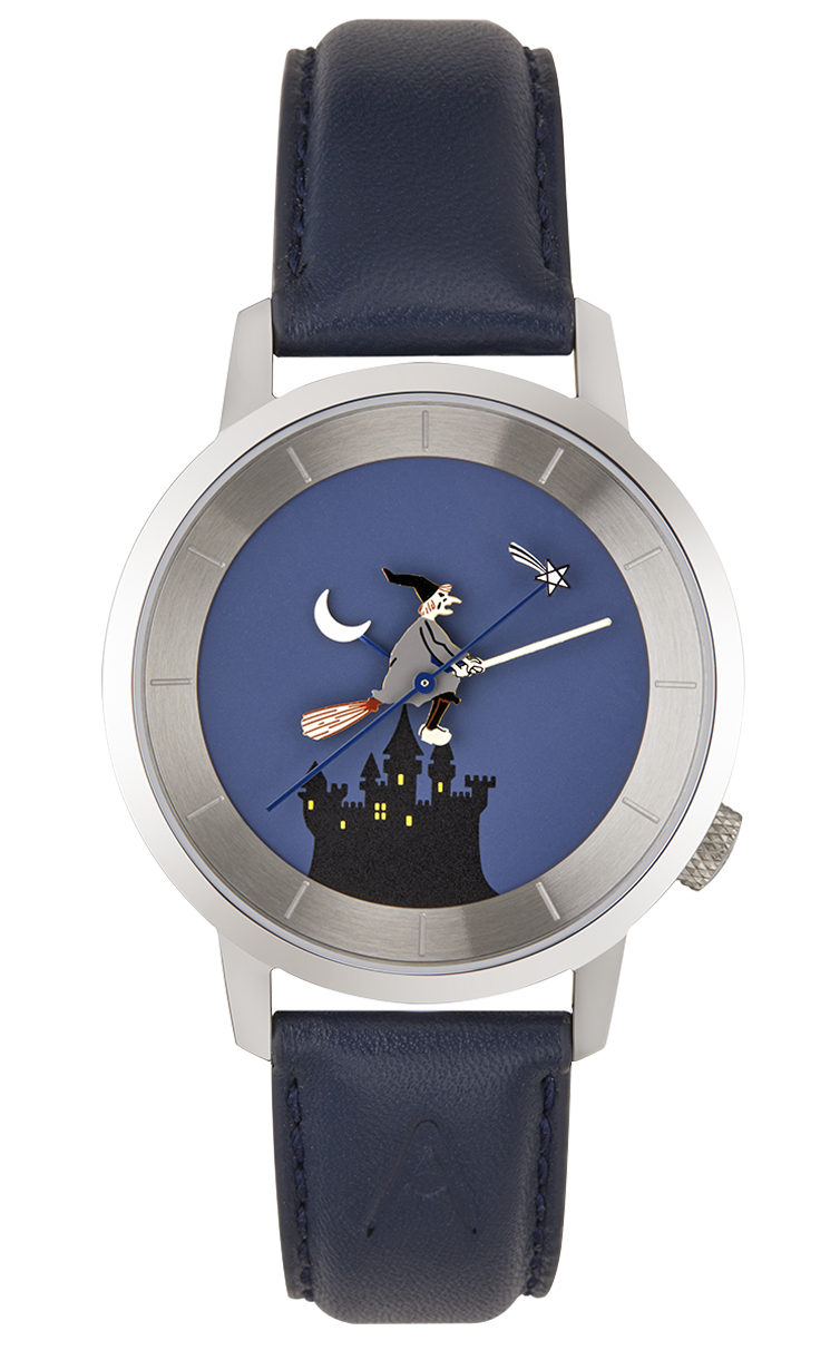 Son cadran sombre est animé par des aiguilles originales en forme de balai et d’étoile filante, évoquant l’univers fascinant de la sorcellerie et des légendes mystiques. Une sorcière trône au centre du cadran, survolant un château sombre. Son design thématique, finement travaillé, séduit les amateurs de fantaisie et d’objets singuliers.