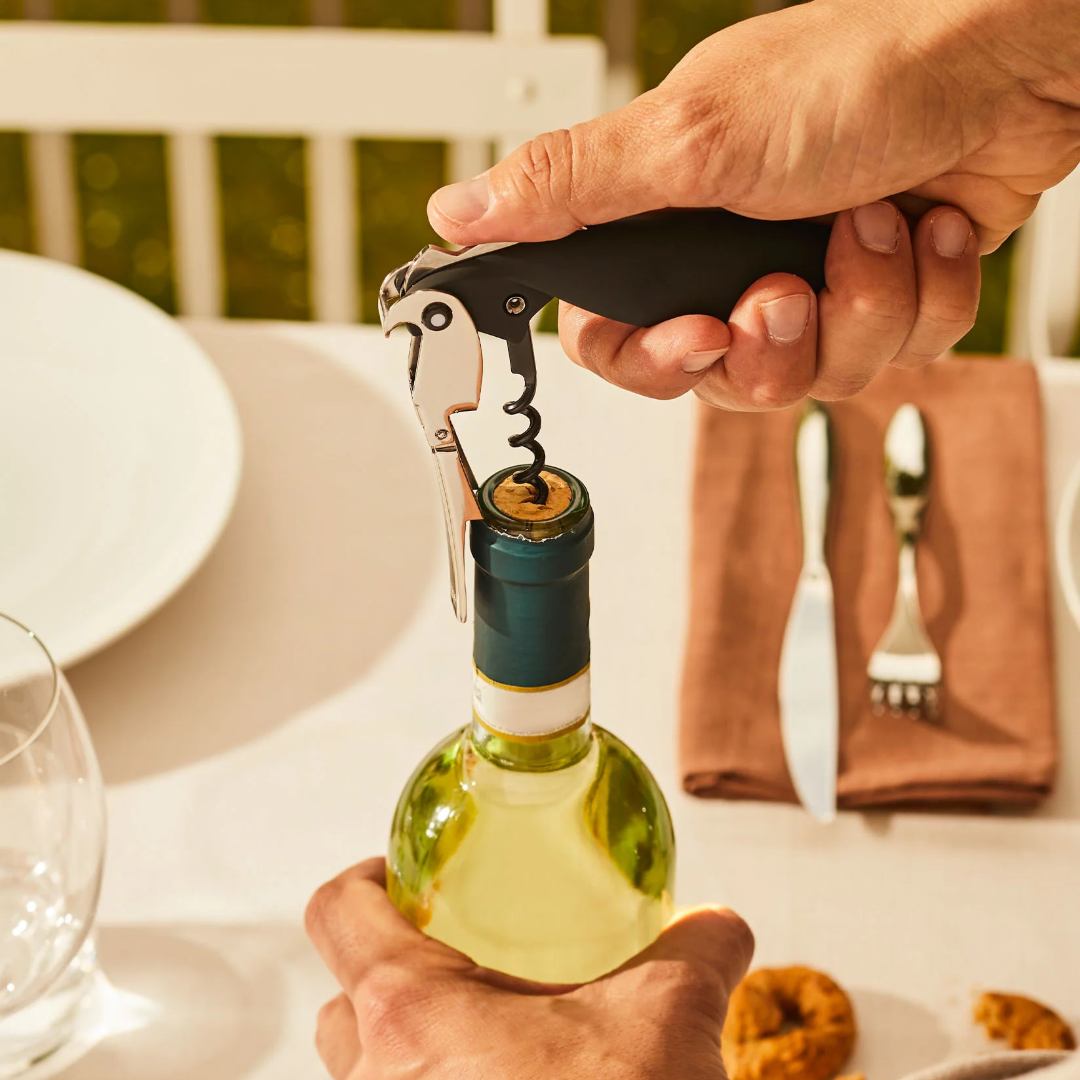 Fabriqué en alliage de chrome et de résine colorée, il allie robustesse et esthétisme. Son système de levier à double appui permet de déboucher les bouteilles sans effort tout en préservant le bouchon. Sa lame intégrée coupe proprement la capsule, tandis que son design coloré apporte une touche d’originalité à votre table ou à votre bar.