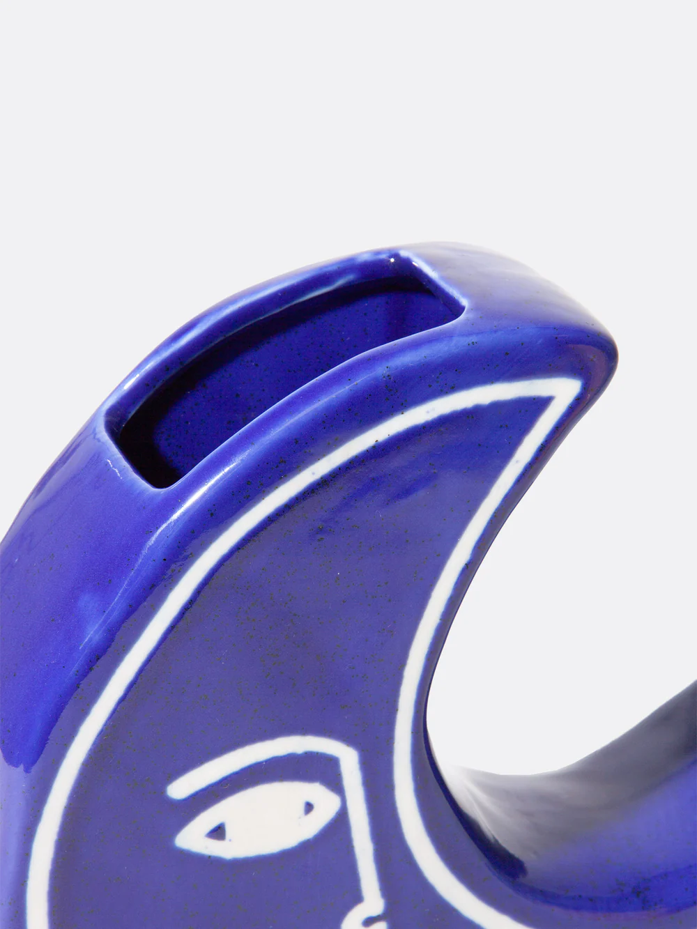 Le vase Moon de DOIY apporte une touche poétique à votre décoration. Sa forme ronde, inspirée de la lune, et sa finition bicolore bleu et blanc en font une pièce aussi élégante qu’originale. Réalisé à la main en céramique émaillée, il accueille aussi bien vos fleurs fraîches que des branches séchées, mais peut également se suffire à lui-même comme objet décoratif.